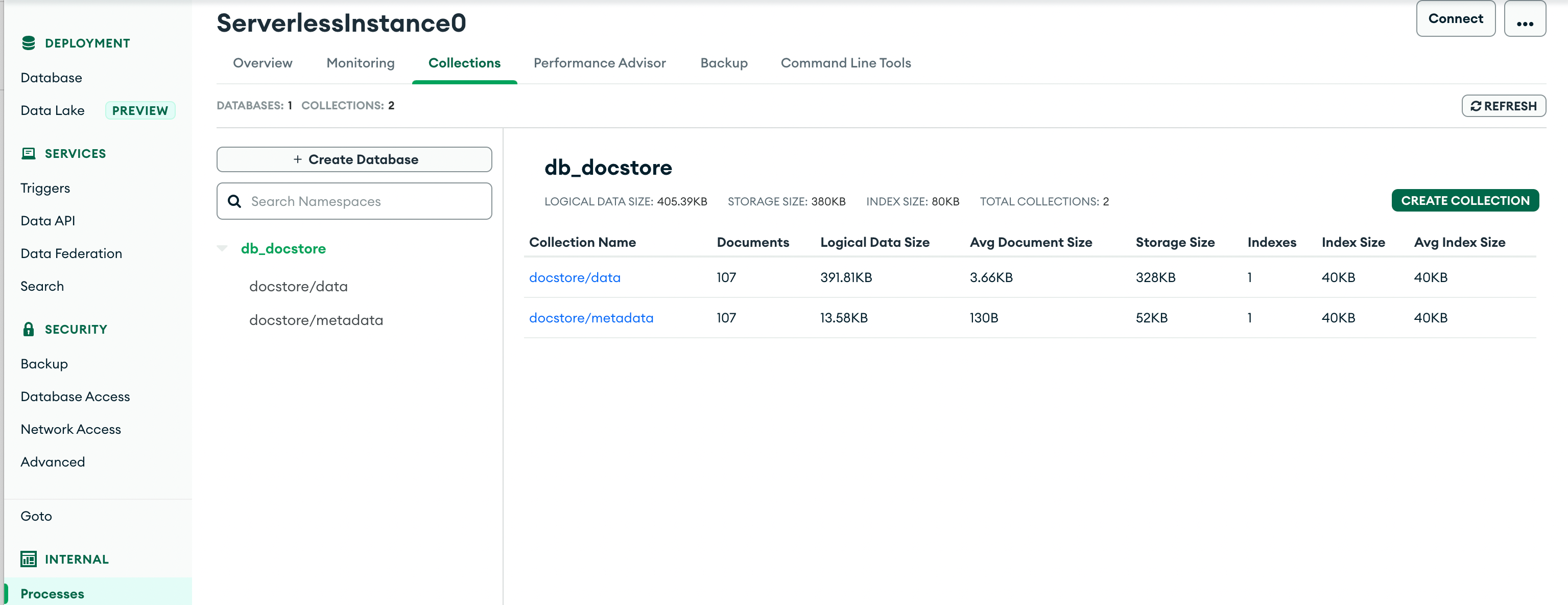 It is effortless to store the ingested documents (i.e. Node objects), index metadata, etc to MongoDB using the inbuilt abstractions in LlamaIndex. There is an option to store the “documents” as an actual collection in MongoDB using MongoDocumentStore. There is an option to persist the “Indexes” using the MongoIndexStore .