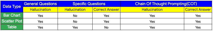 This blog post investigates GPT-4V’s proficiency in interpreting bar charts, scatter plots, and tables. We aim to assess whether specific questioning and chain of thought prompting can yield better responses compared to broader inquiries. Our demonstration seeks to determine if GPT-4V can exceed these known limitations with precise questioning and systematic reasoning techniques.