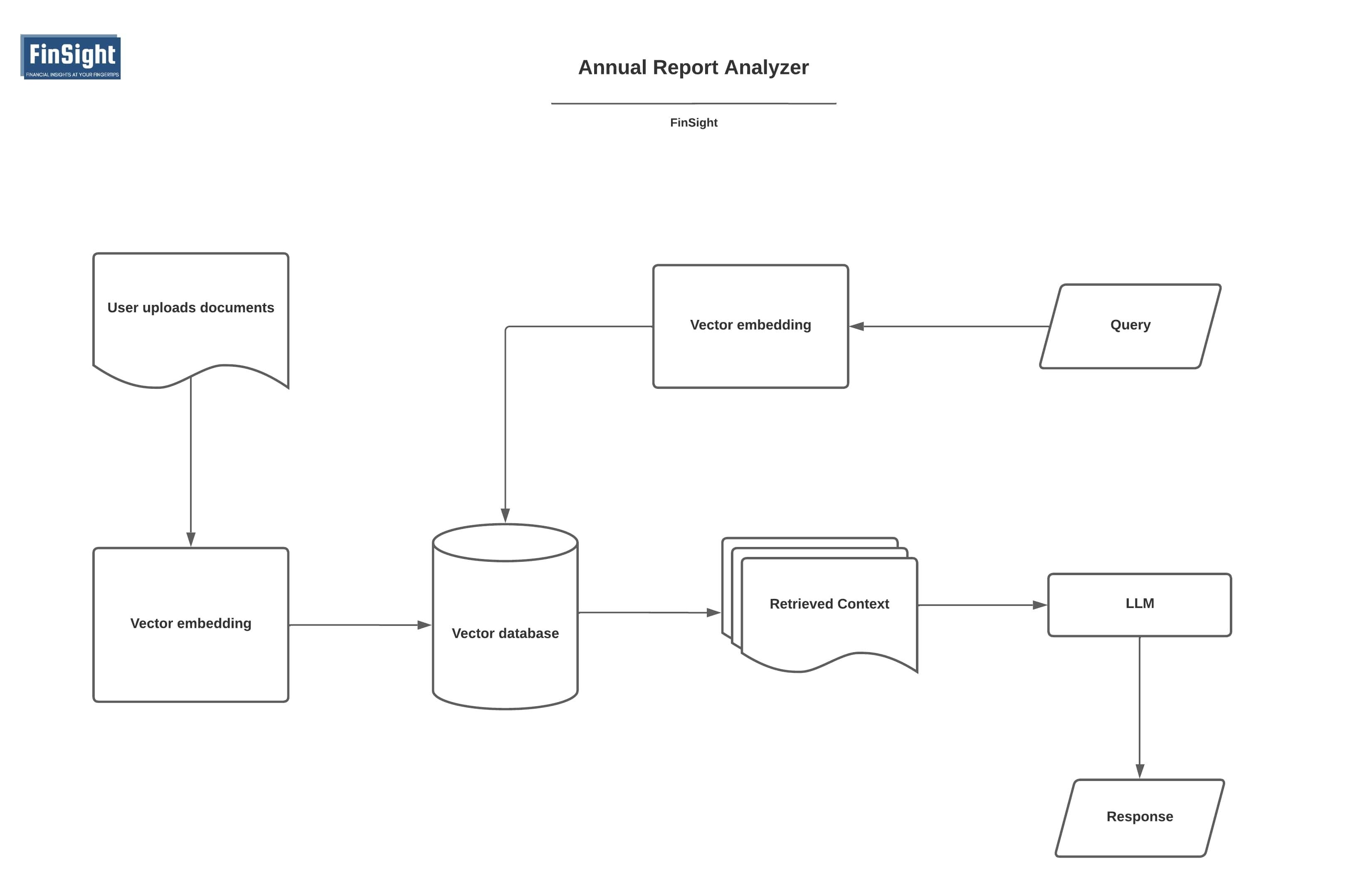 Annual Report Analyzer is a RAG(Retrieval Augmented Generation) based feature, which means that the LLM will be generating insights based on the information in a knowledge base (which in this case is a company’s annual report). Here’s how it works behind the scenes: