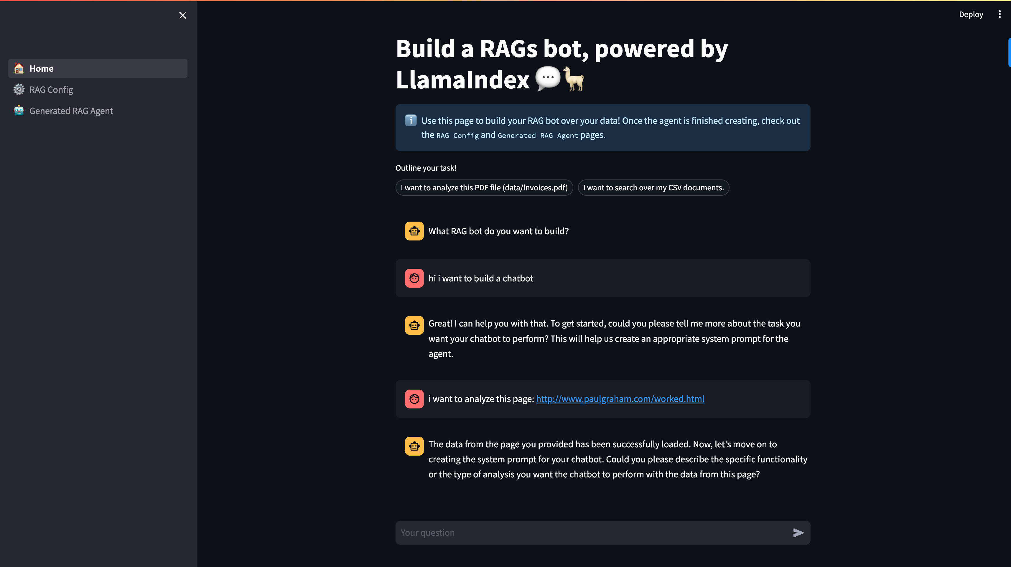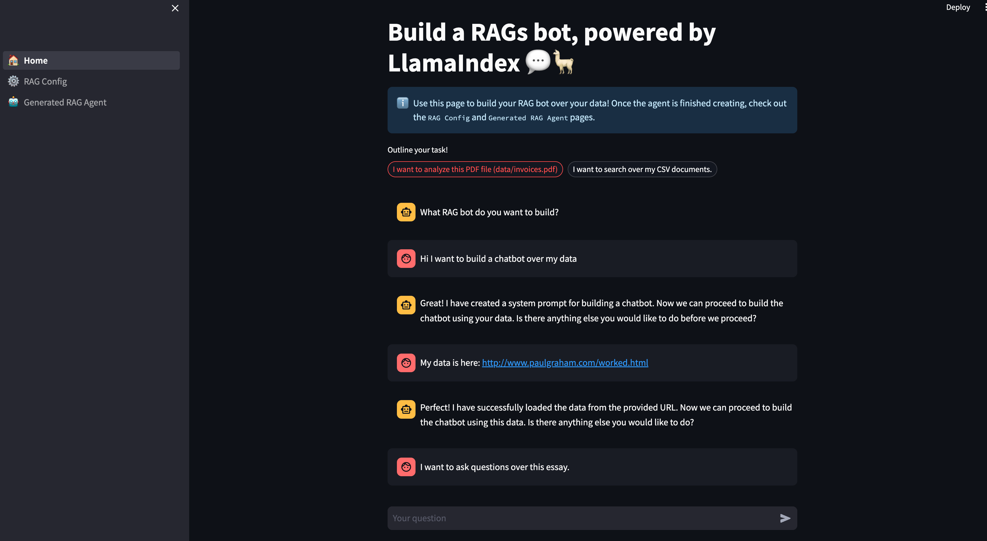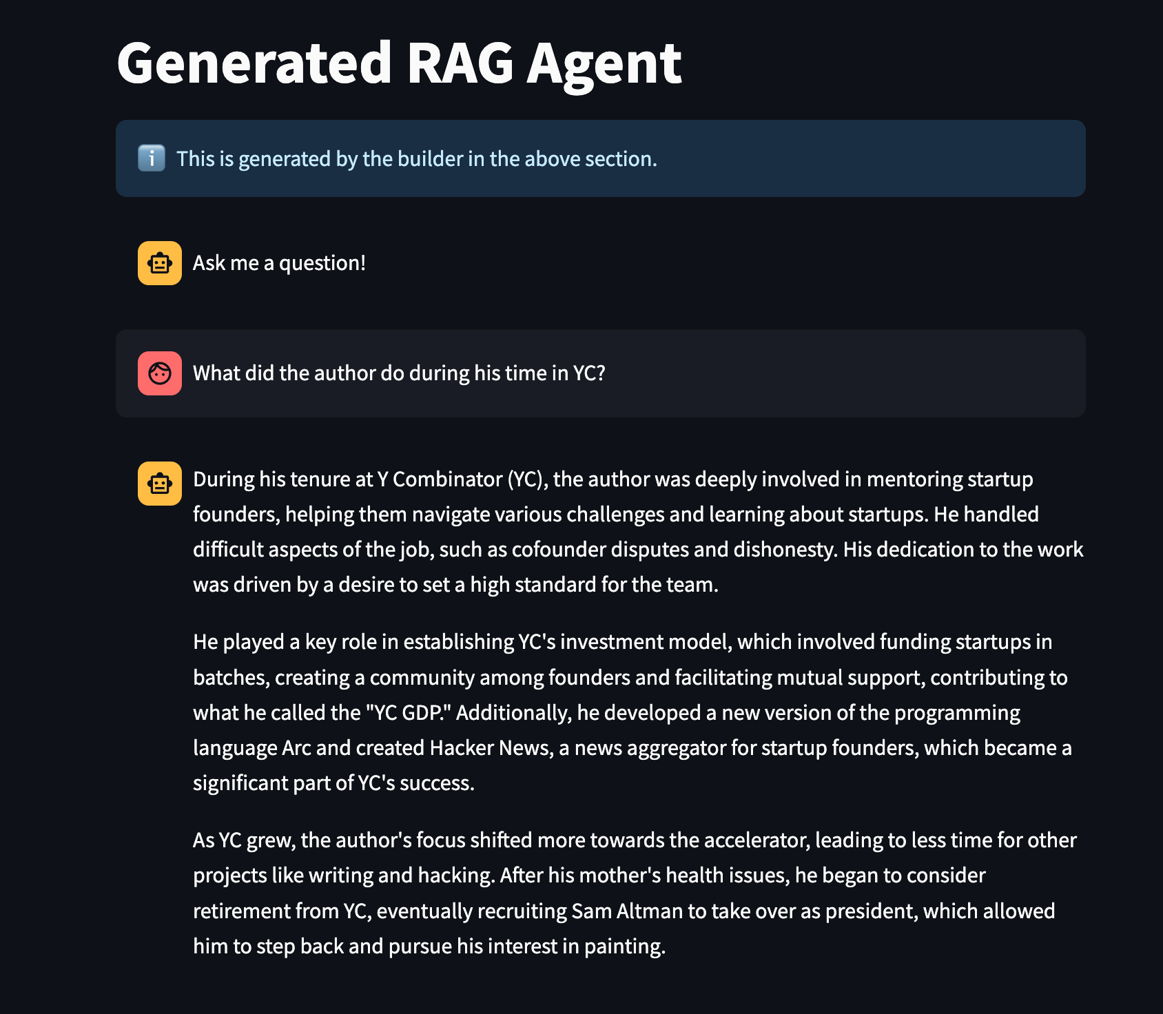 - Interactive RAG Agent: Once set up, you can interact with your RAG agent, asking questions and getting responses based on your data.