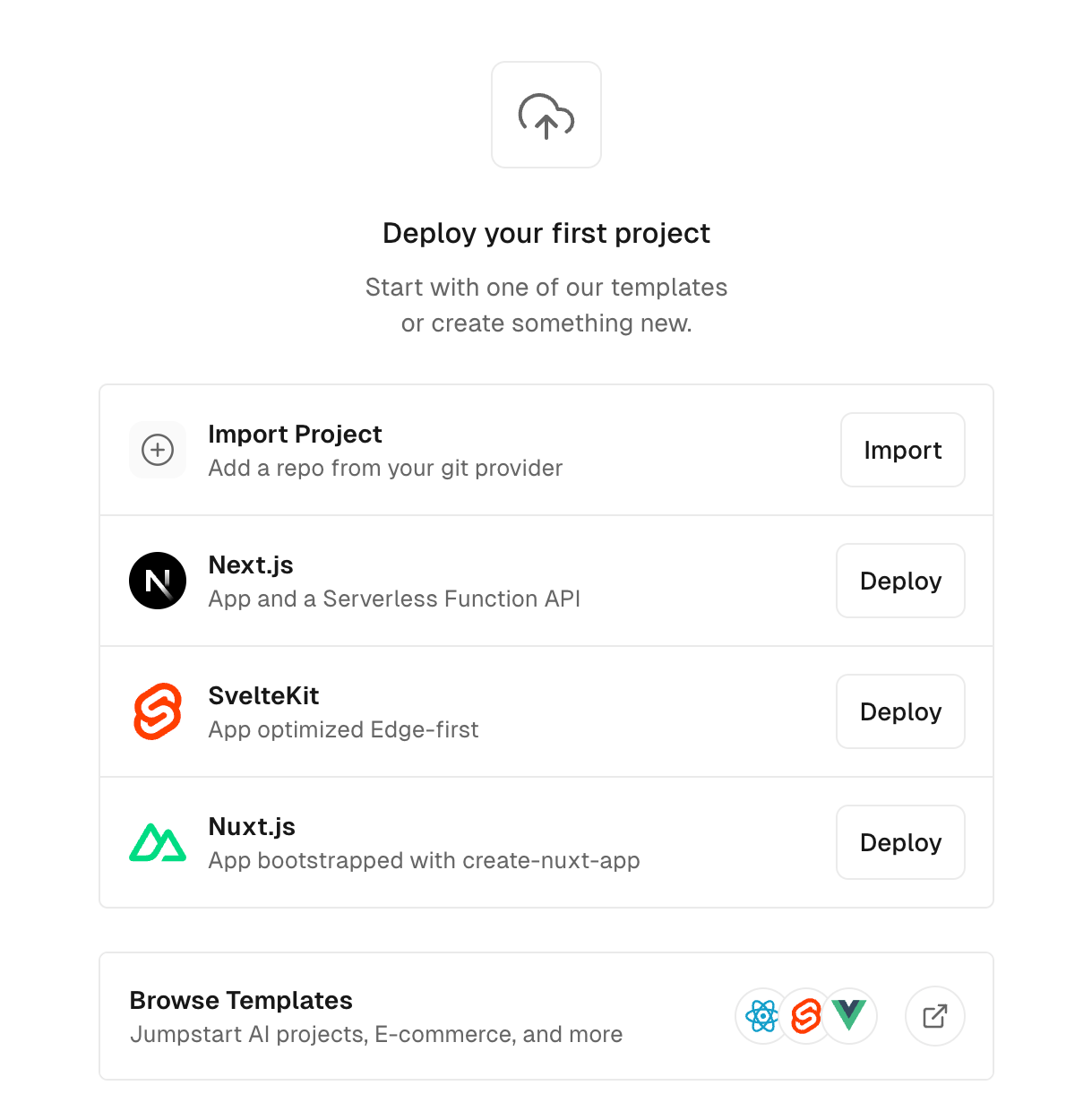 The serverless full-stack Next.js application is the simplest version to deploy as you only have one artifact to deploy. Because it’s a Next.js app we’ll be deploying to Vercel, the home of Next.js.