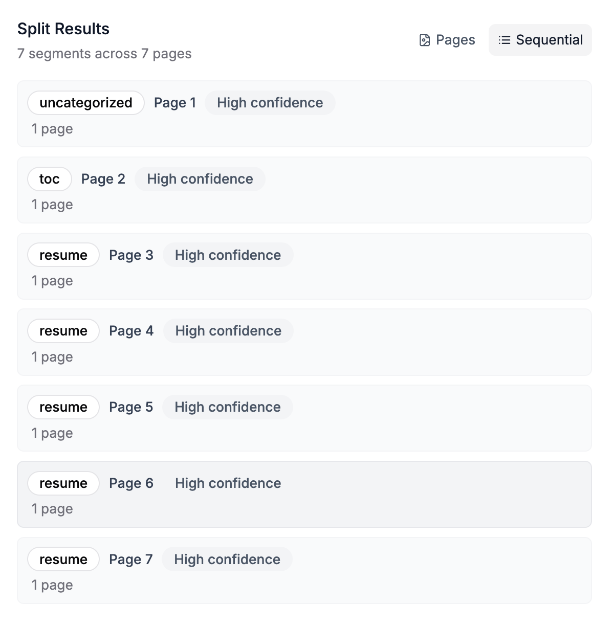 - Combine with LlamaExtract: Run targeted extraction on each segment (extract resume data from candidate segments, invoice data from invoice segments, etc.)