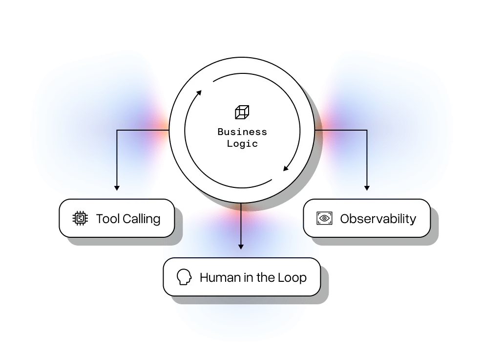 Leverage core components like memory, state management, human-in-the-loop, reflection, and more. Customize components to match your workflows.